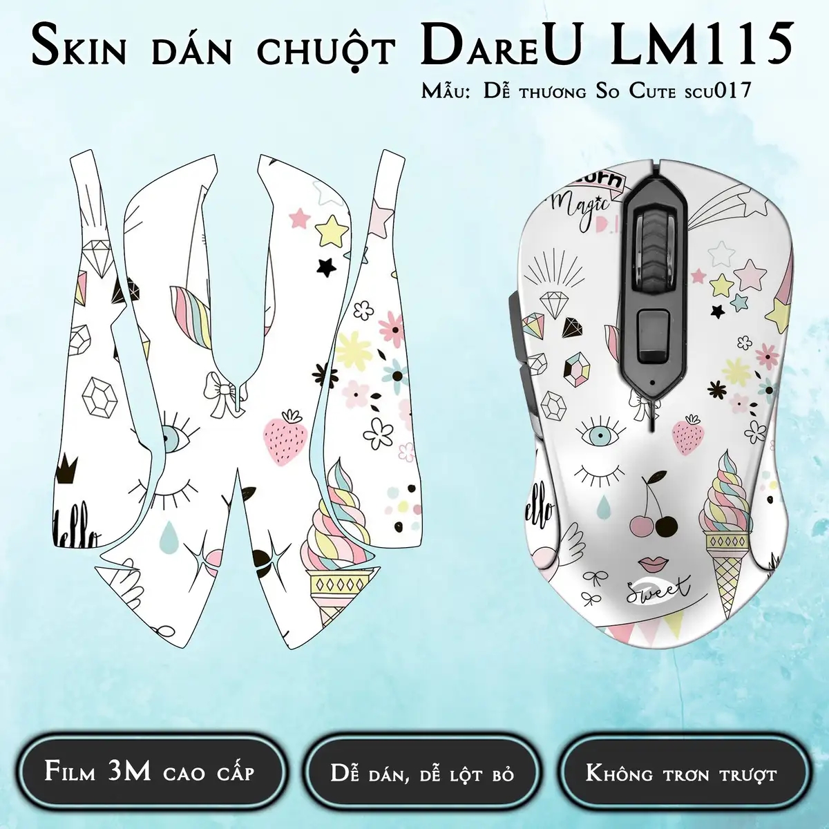 Skin dán chuột Dareu LM115 mẫu Dễ thương So Cute scu017