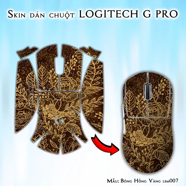 Skin dán chuột Logitech G Pro mẫu Bông Hồng Vàng lsm007