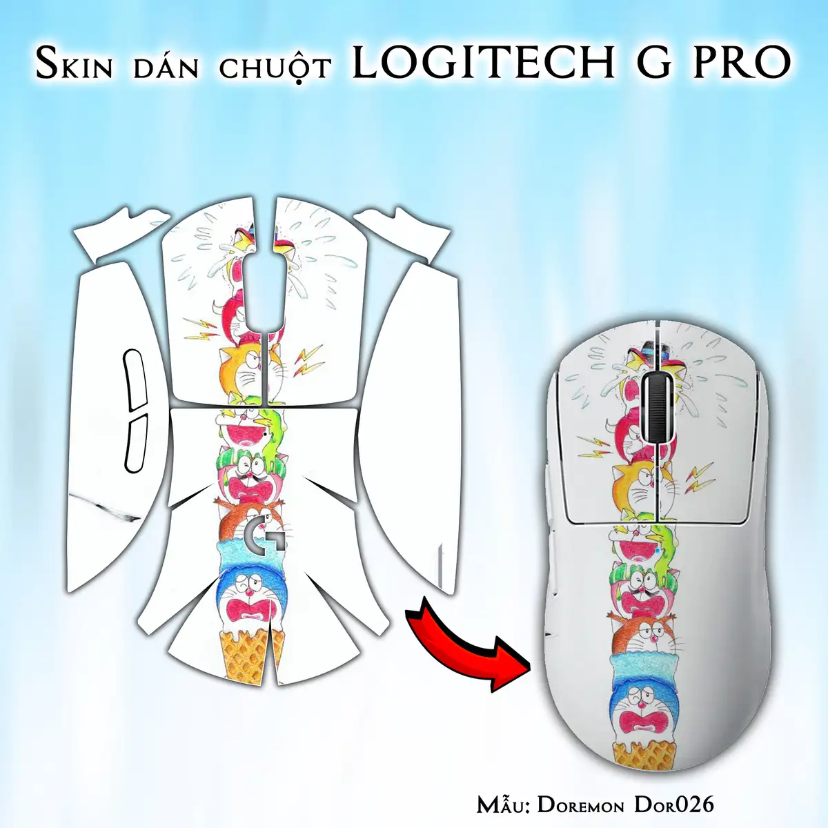 Skin dán chuột Logitech G Pro mẫu Doremon Dor026