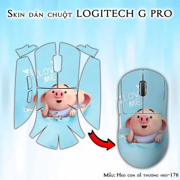 Skin dán chuột Logitech G Pro mẫu Heo con dễ thương heo-176