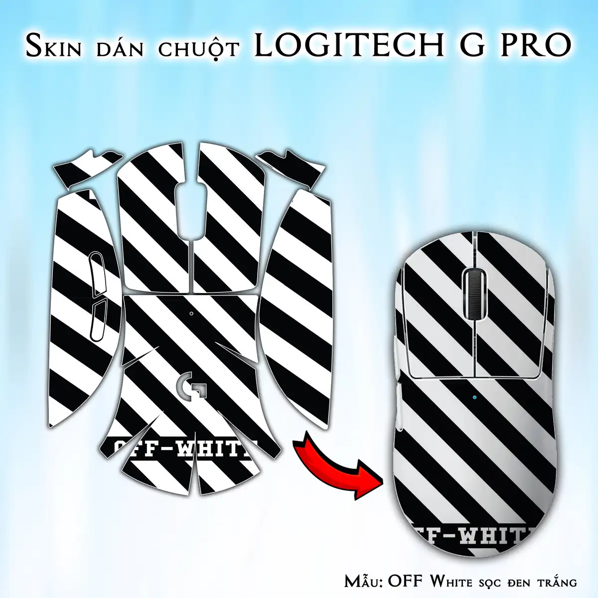 Skin dán chuột Logitech G Pro mẫu OFF White sọc đen trắng