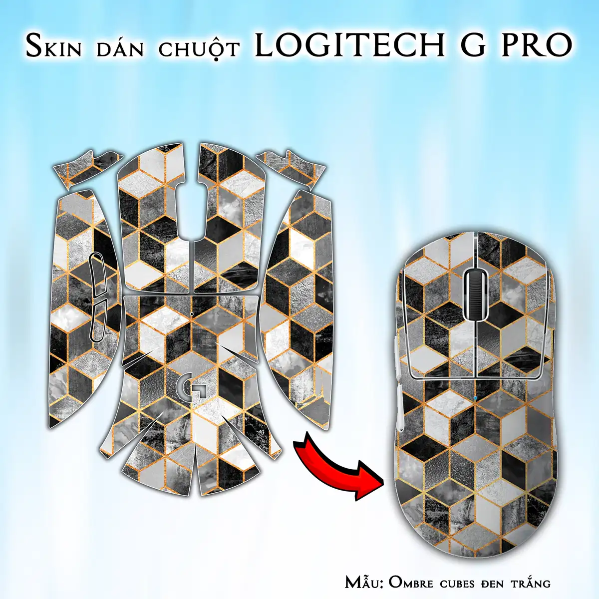 Skin dán chuột Logitech G Pro mẫu Ombre cubes đen trắng