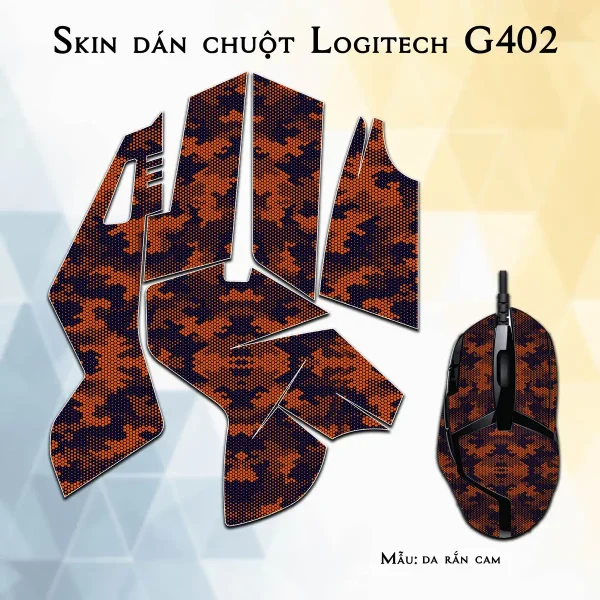 Skin dán chuột Logitech G402 mẫu da rắn cam