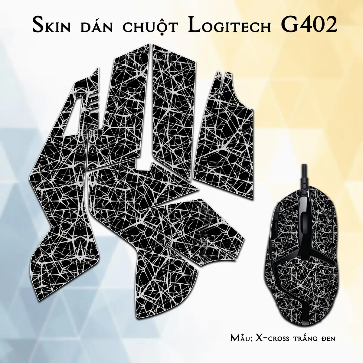 Skin dán chuột Logitech G402 mẫu X-cross trắng đen