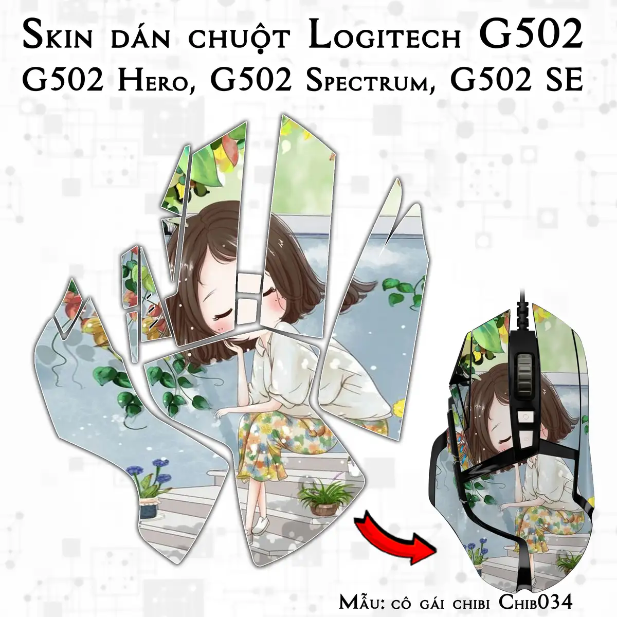 Skin dán chuột Logitech G502 mẫu cô gái chibi Chib034