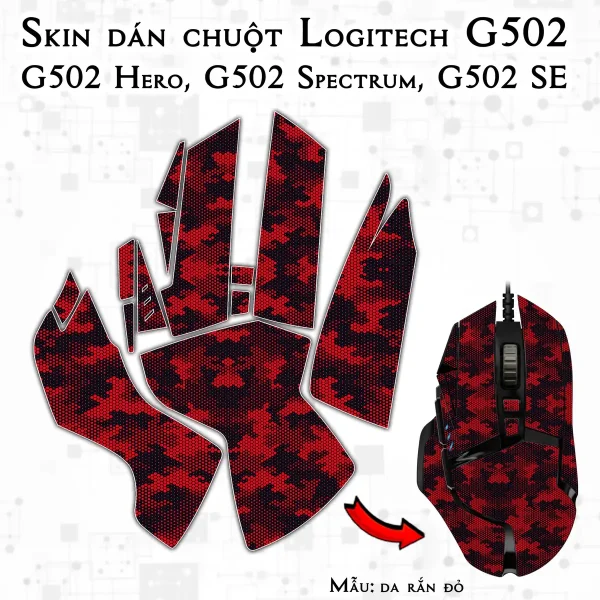 Skin dán chuột Logitech G502 mẫu da rắn đỏ
