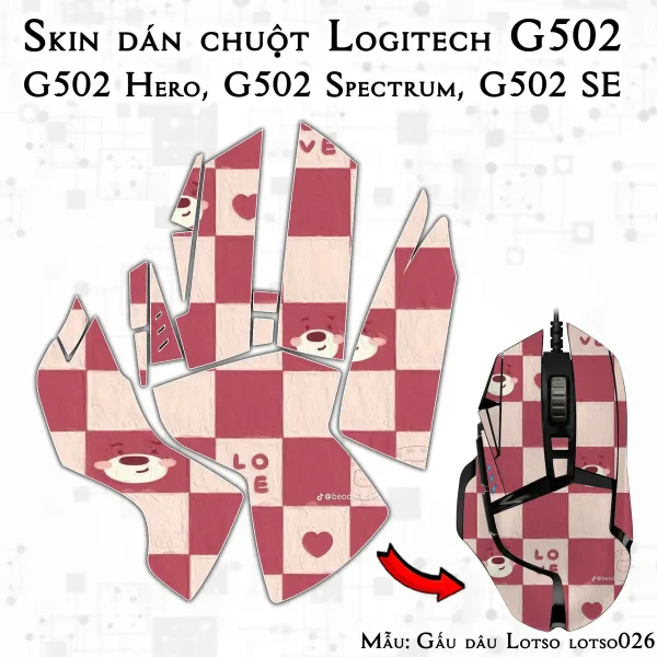Skin dán chuột Logitech G502 mẫu Gấu dâu Lotso lotso026