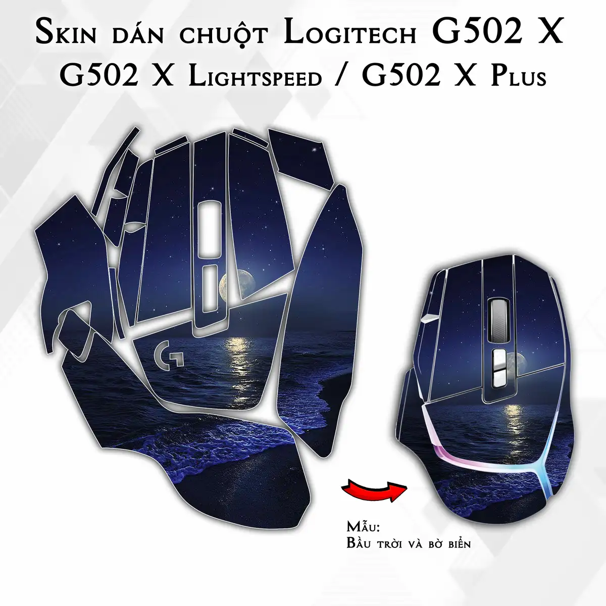 Skin dán chuột Logitech G502 X mẫu Bầu trời và bờ biển