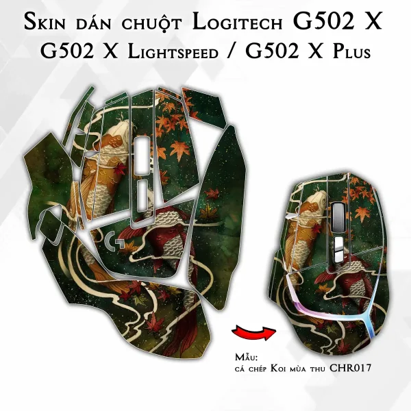 Skin dán chuột Logitech G502 X mẫu cá chép Koi mùa thu CHR017