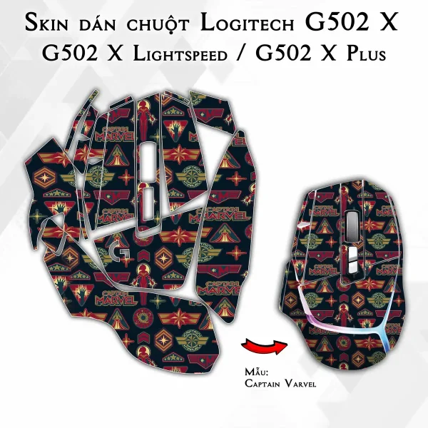 Skin dán chuột Logitech G502 X mẫu Captain Varvel