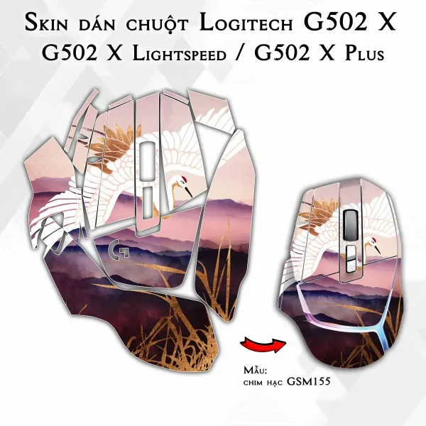 Skin dán chuột Logitech G502 X mẫu chim hạc GSM155