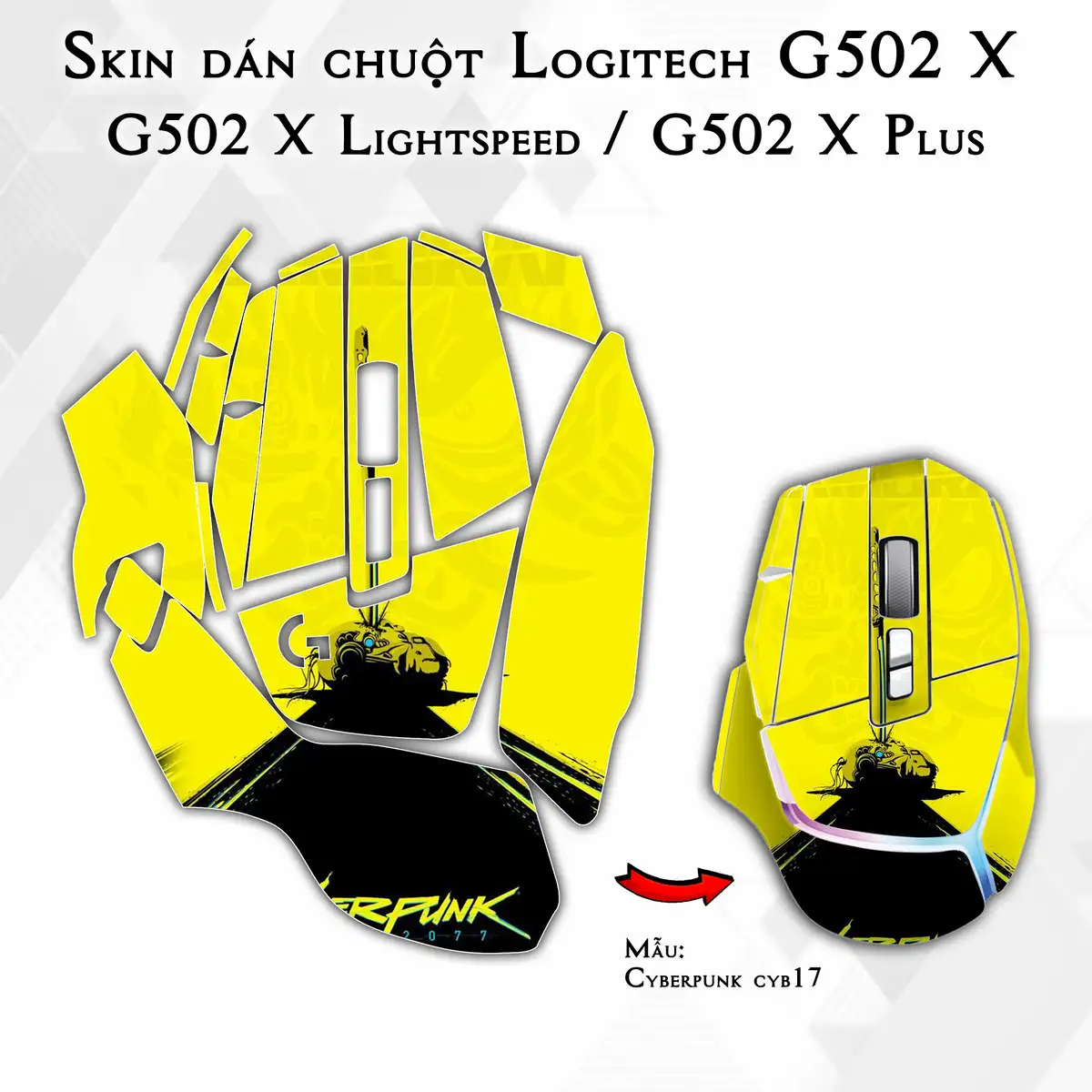 Skin dán chuột Logitech G502 X mẫu Cyberpunk cyb17