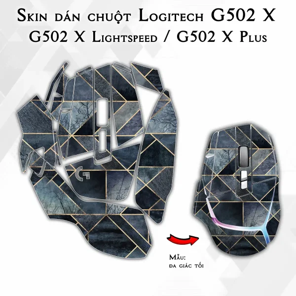 Skin dán chuột Logitech G502 X mẫu đa giác tối