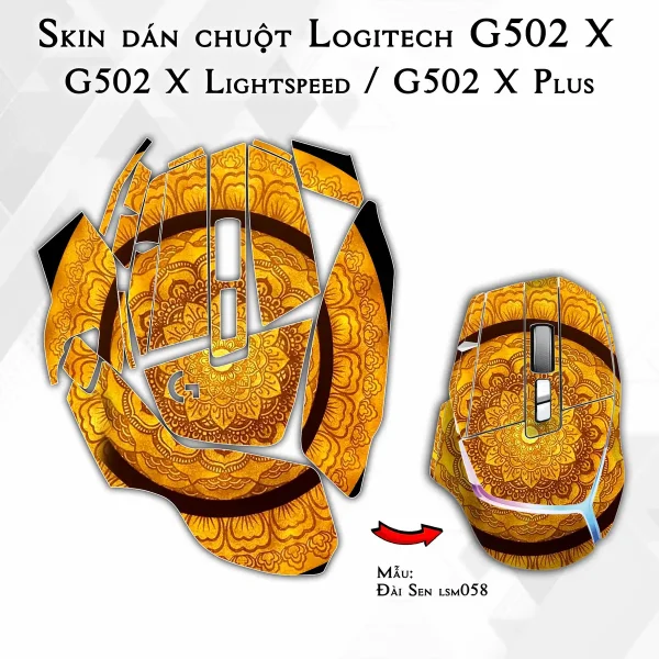Skin dán chuột Logitech G502 X mẫu Đài Sen lsm058