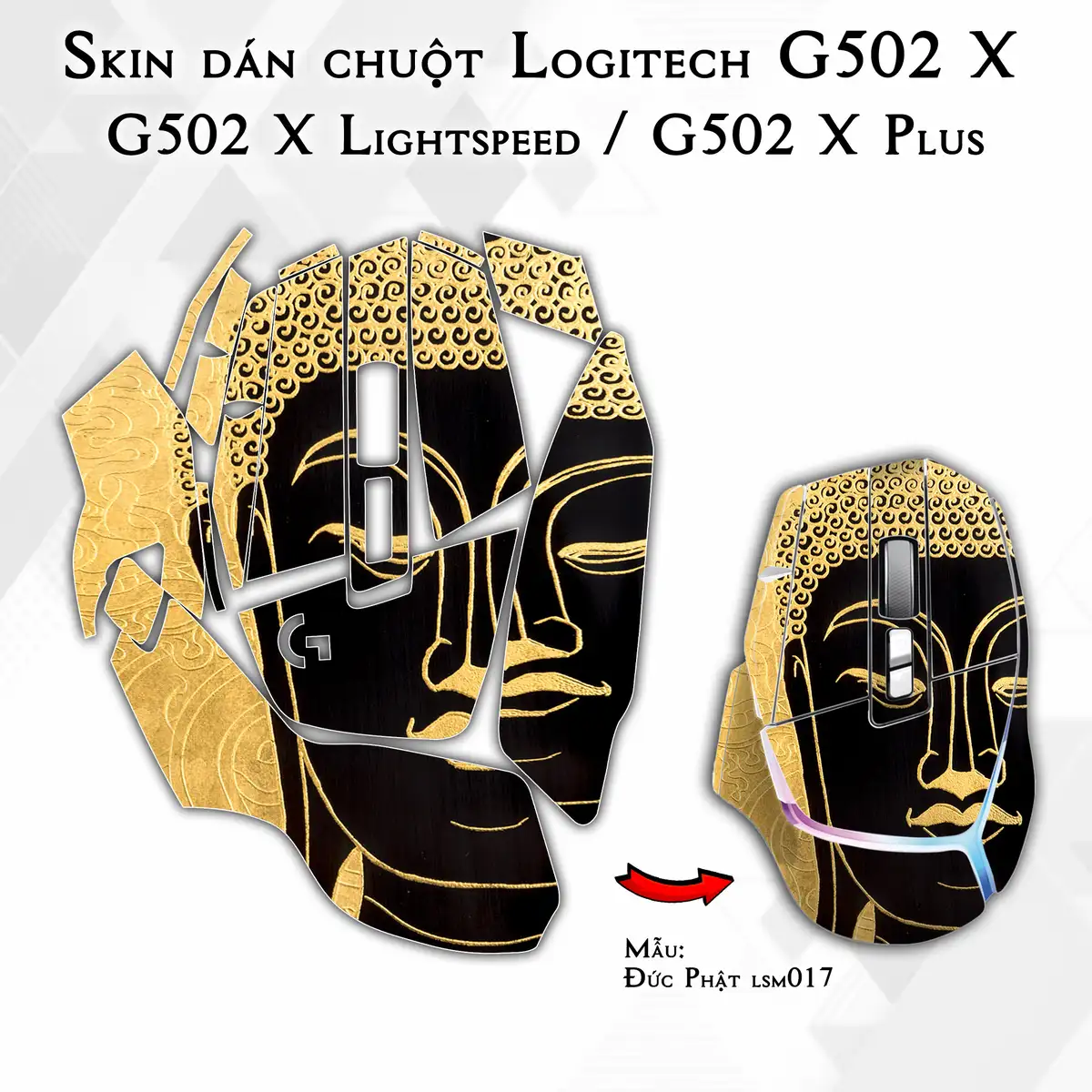 Skin dán chuột Logitech G502 X mẫu Đức Phật lsm017