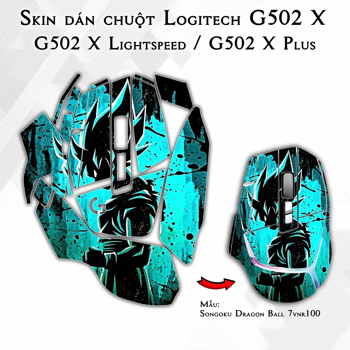 Skin dán chuột Logitech G502 X mẫu Songoku Dragon Ball 7vnr100