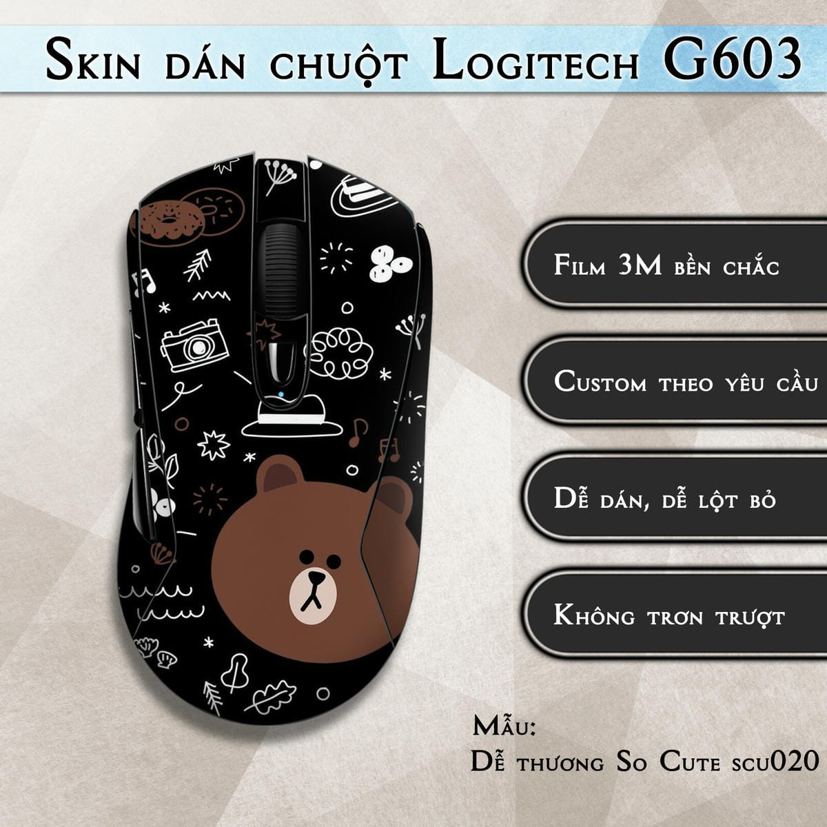 Skin dán chuột Logitech G603 mẫu Dễ thương So Cute scu020