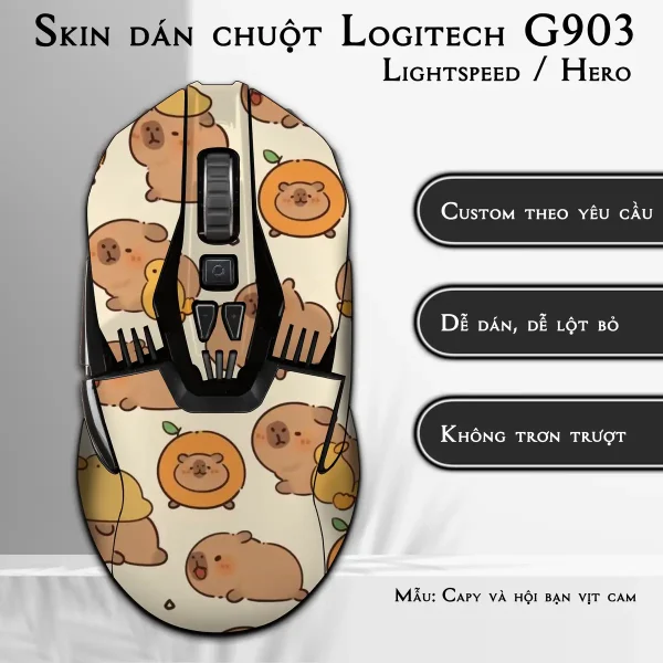 Skin dán chuột Logitech G903 mẫu Capy và hội bạn vịt cam