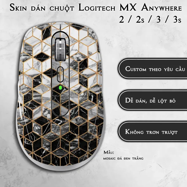 Skin dán chuột Logitech MX Anywhere mẫu mosaic đá đen trắng