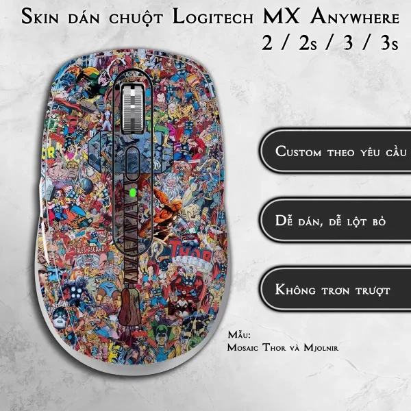 Skin dán chuột Logitech MX Anywhere mẫu Mosaic Thor và Mjolnir