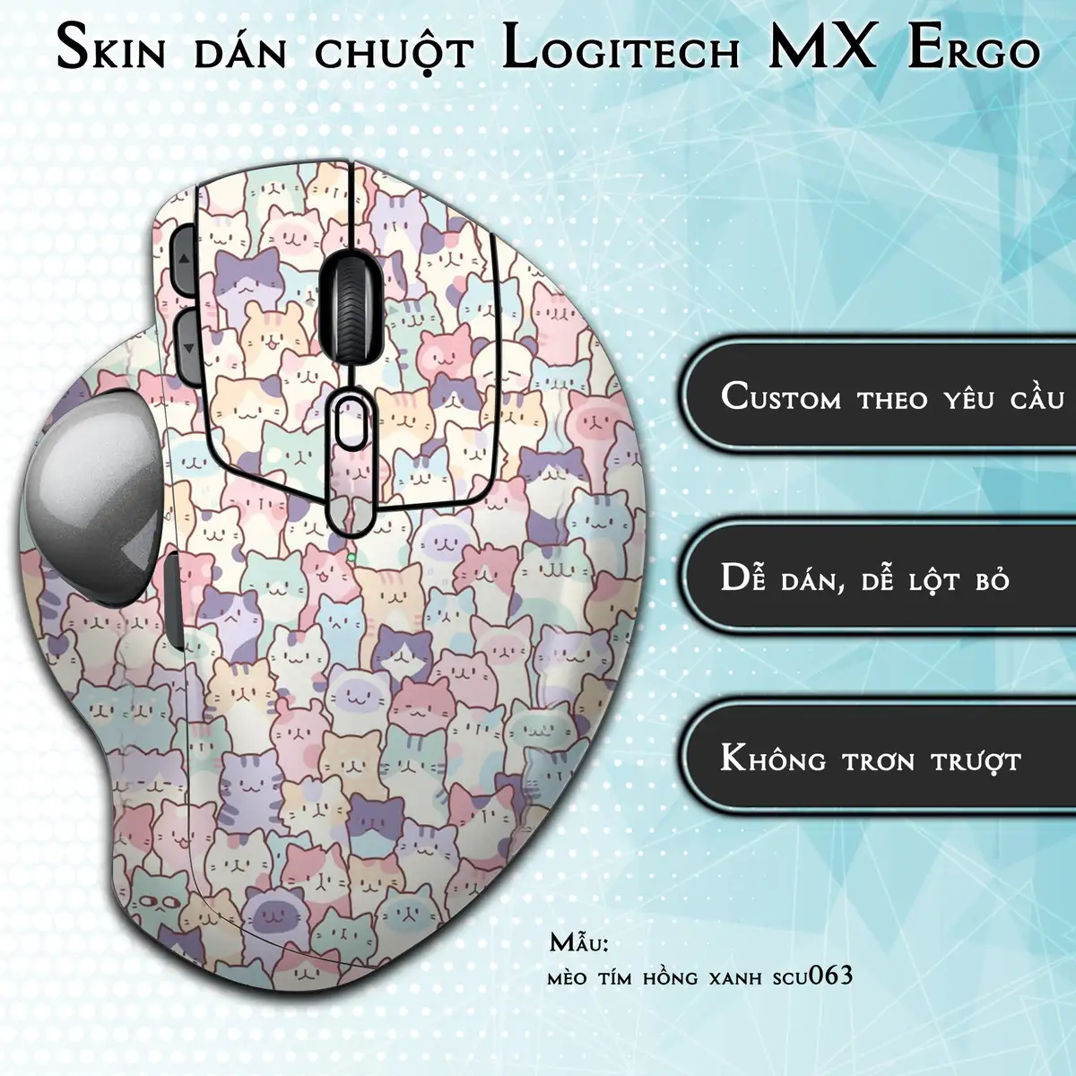 Skin dán chuột Logitech MX Ergo mẫu mèo tím hồng xanh scu063