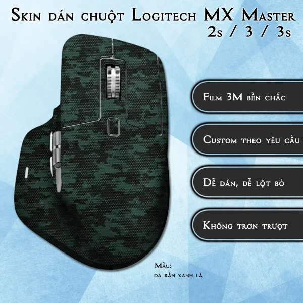 Skin dán chuột Logitech MX Master 2, 2s, 3, 3s mẫu da rắn xanh lá