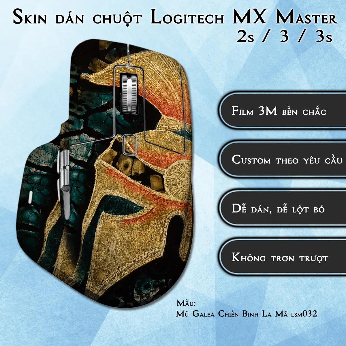 Skin dán chuột Logitech MX Master 2, 2s, 3, 3s mẫu Mũ Galea Chiến Binh La Mã lsm032