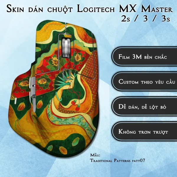 Skin dán chuột Logitech MX Master 2, 2s, 3, 3s mẫu Traditional Patterns patt07