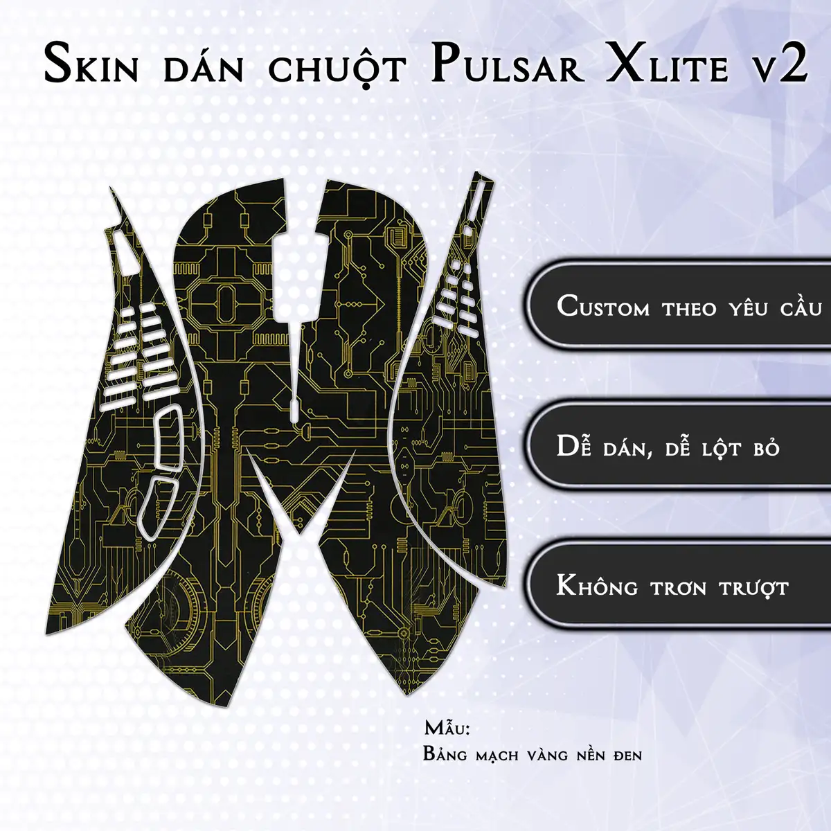 Skin dán chuột Pulsar Xlite Wireless v2 mẫu Bảng mạch vàng nền đen