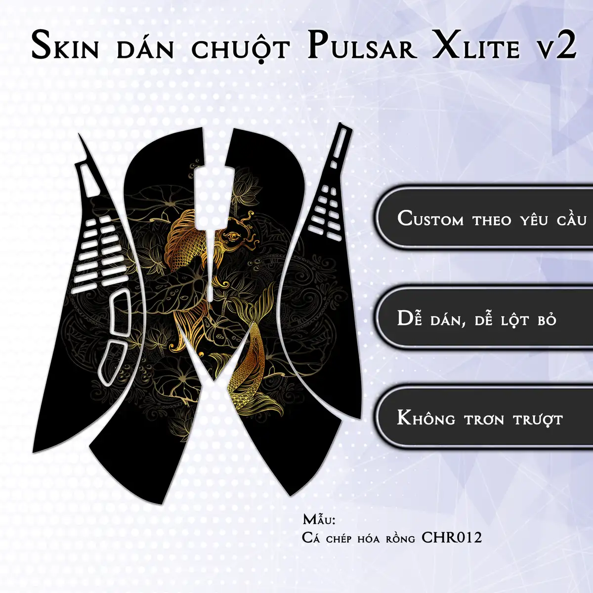 Skin dán chuột Pulsar Xlite Wireless v2 mẫu Cá chép hóa rồng CHR012