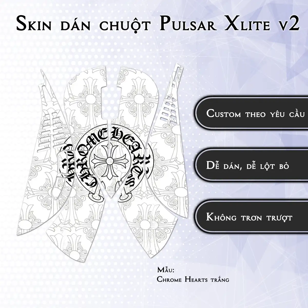 Skin dán chuột Pulsar Xlite Wireless v2 mẫu Chrome Hearts trắng