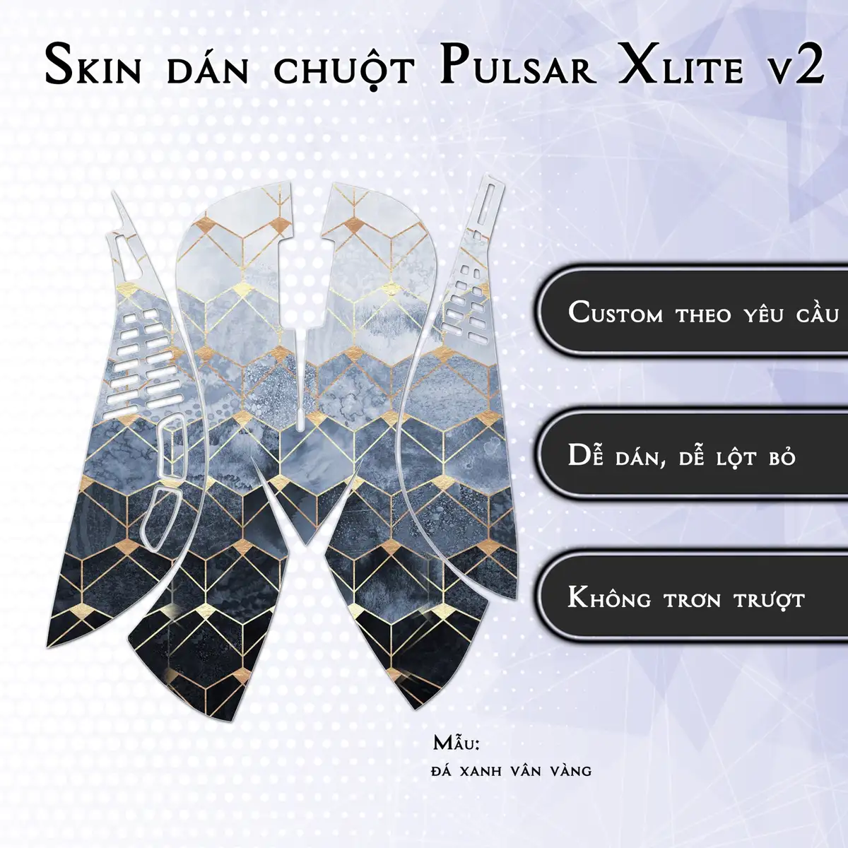 Skin dán chuột Pulsar Xlite Wireless v2 mẫu đá xanh vân vàng