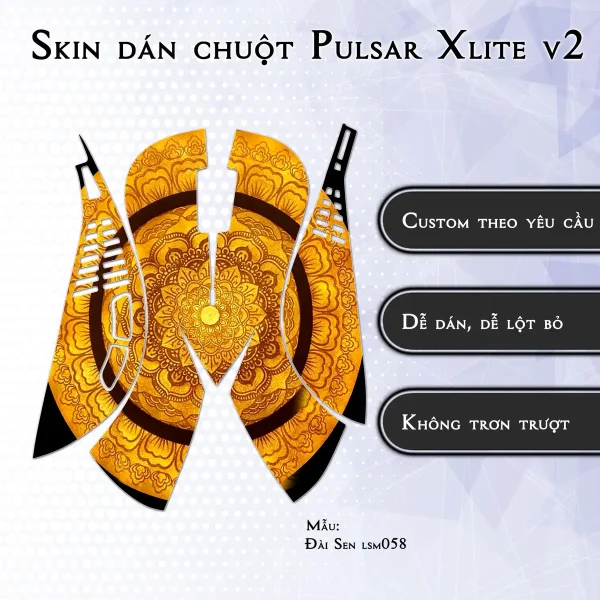 Skin dán chuột Pulsar Xlite Wireless v2 mẫu Đài Sen lsm058