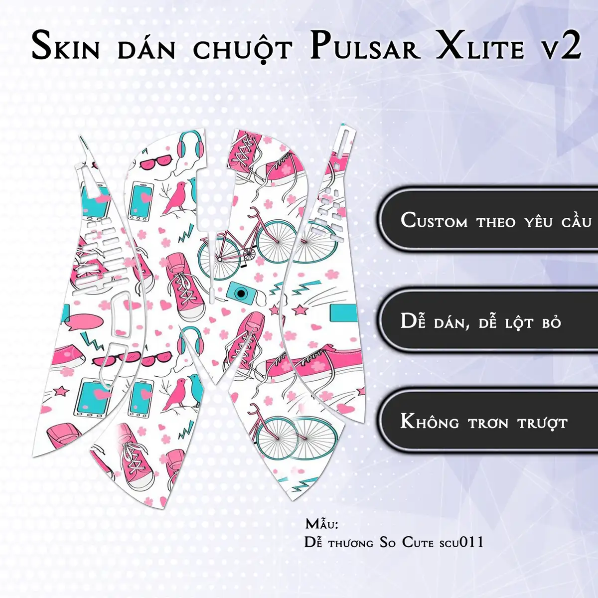 Skin dán chuột Pulsar Xlite Wireless v2 mẫu Dễ thương So Cute scu011