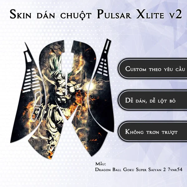 Skin dán chuột Pulsar Xlite Wireless v2 mẫu Dragon Ball Goku Super Saiyan 2 7vnr54
