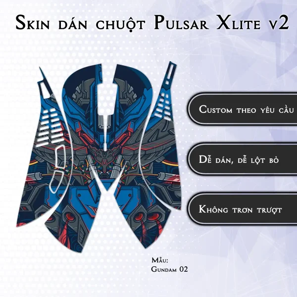 Skin dán chuột Pulsar Xlite Wireless v2 mẫu Gundam 02