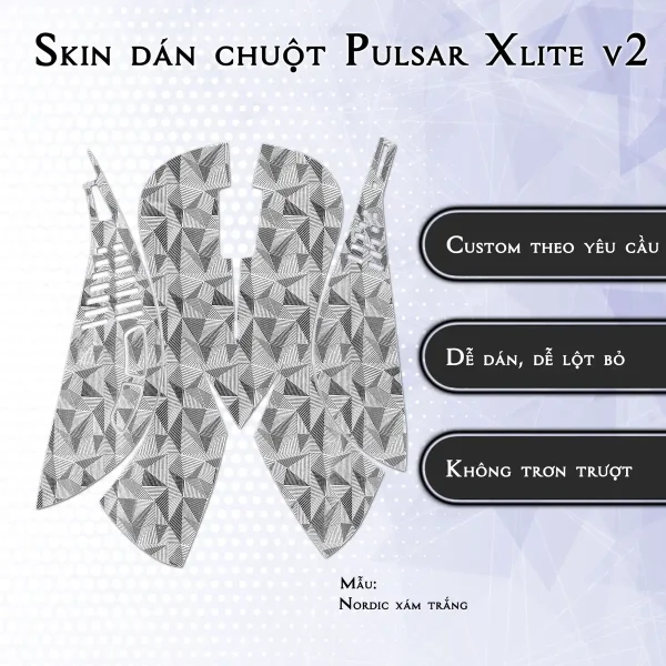 Skin dán chuột Pulsar Xlite Wireless v2 mẫu Nordic xám trắng