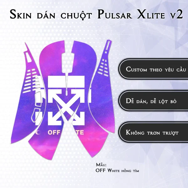 Skin dán chuột Pulsar Xlite Wireless v2 mẫu OFF White hồng tím