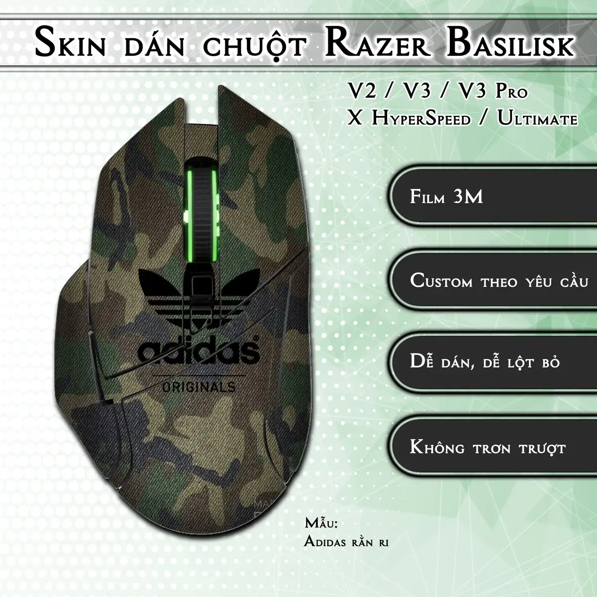 Skin dán chuột Razer Basilisk mẫu Adidas rằn ri
