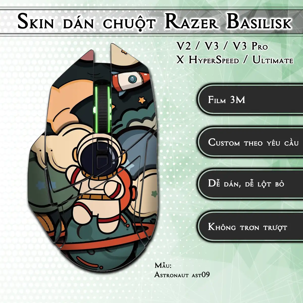 Skin dán chuột Razer Basilisk mẫu Astronaut ast09