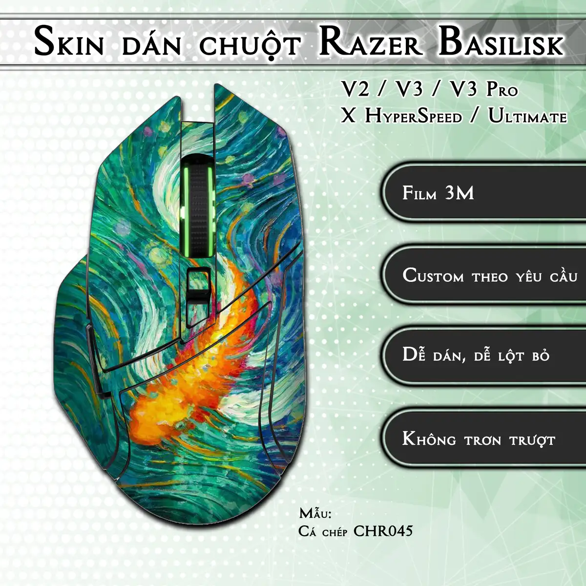 Skin dán chuột Razer Basilisk mẫu Cá chép CHR045