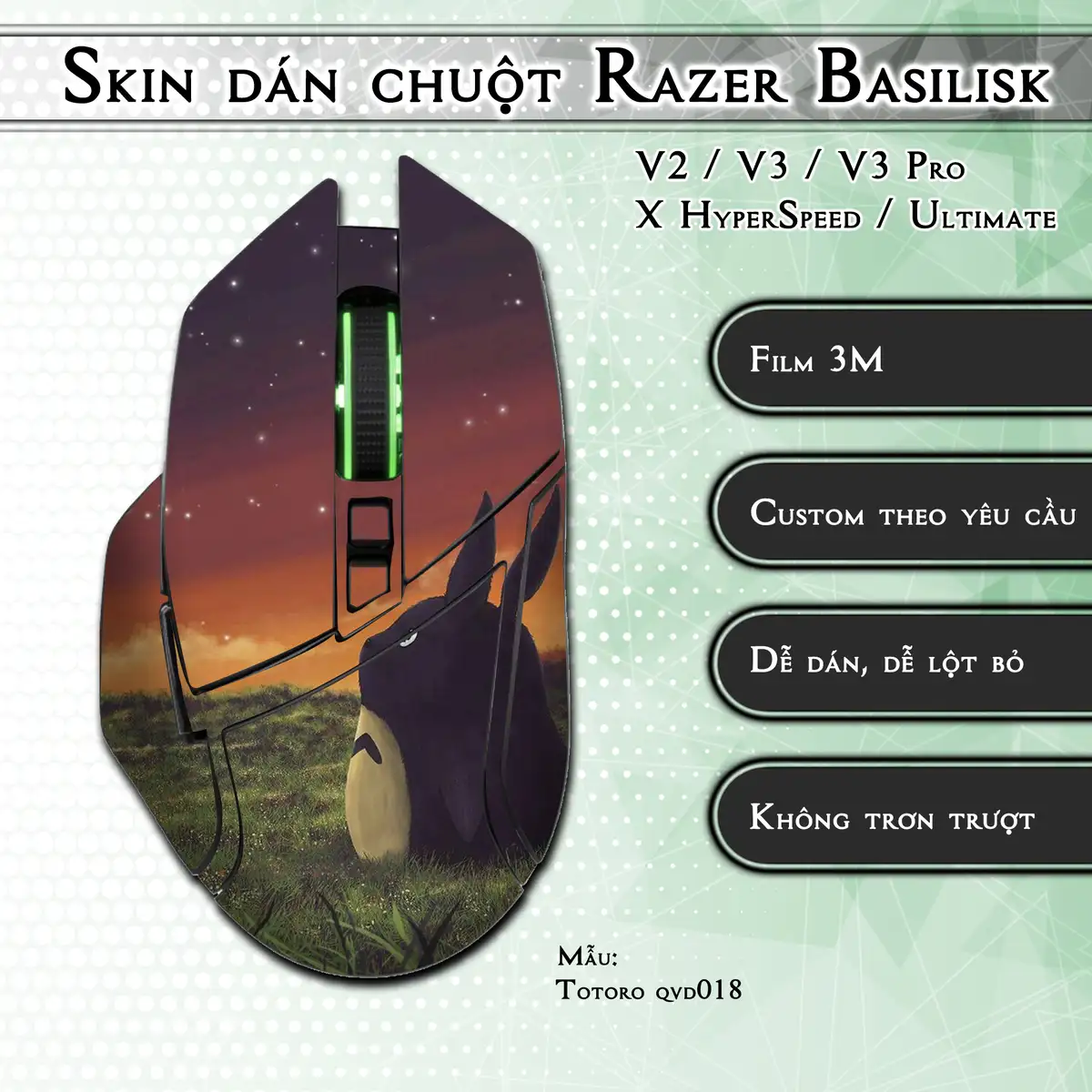 Skin dán chuột Razer Basilisk mẫu Totoro qvd018
