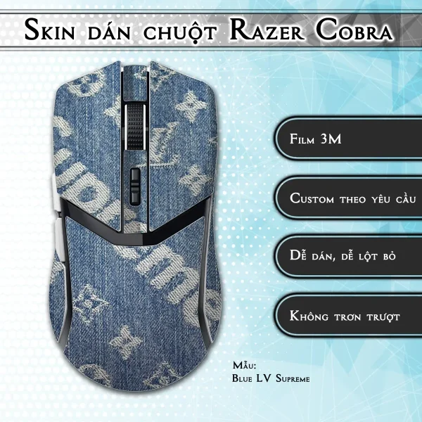 Skin dán chuột Razer Cobra Pro mẫu Blue LV Supreme