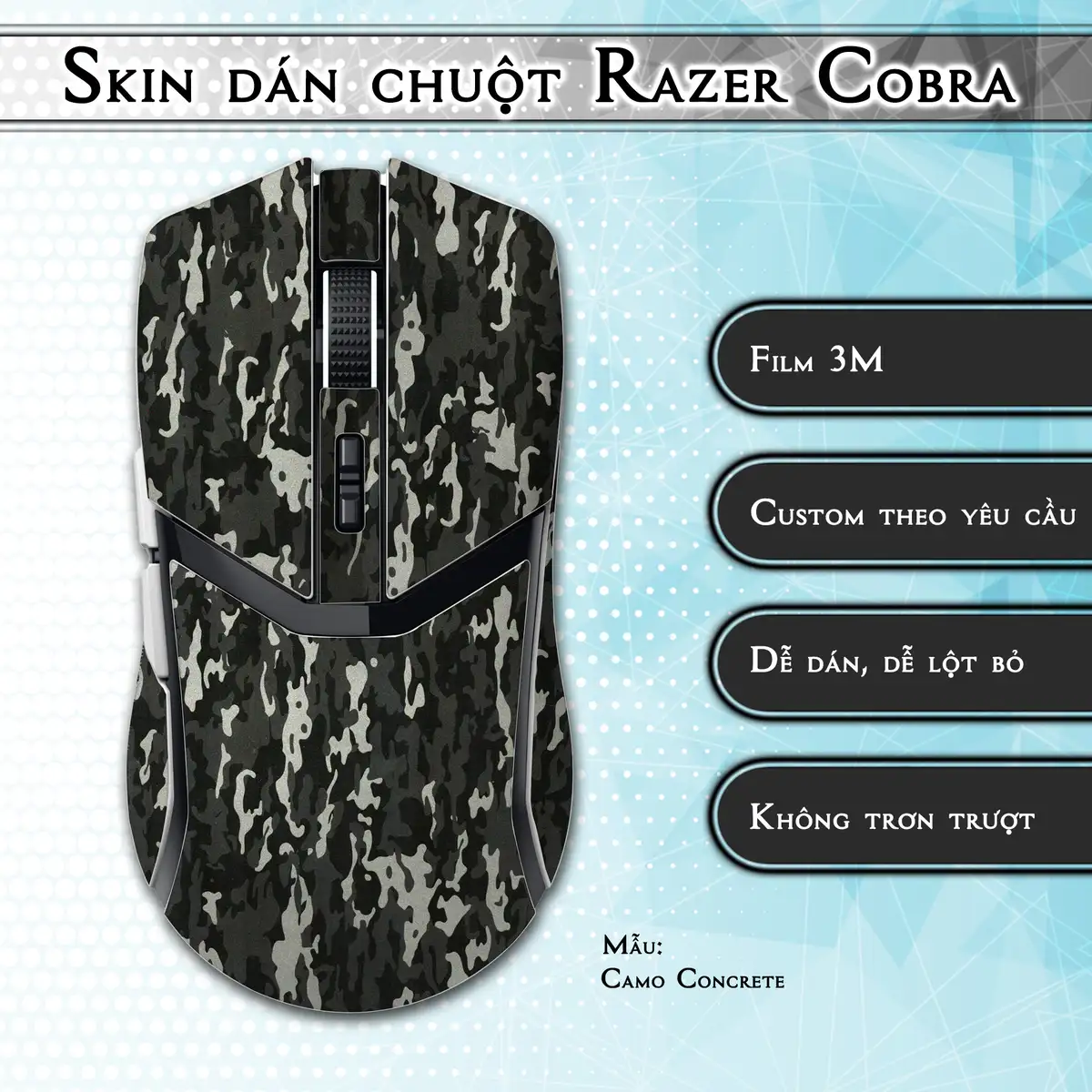 Skin dán chuột Razer Cobra Pro mẫu Camo Concrete
