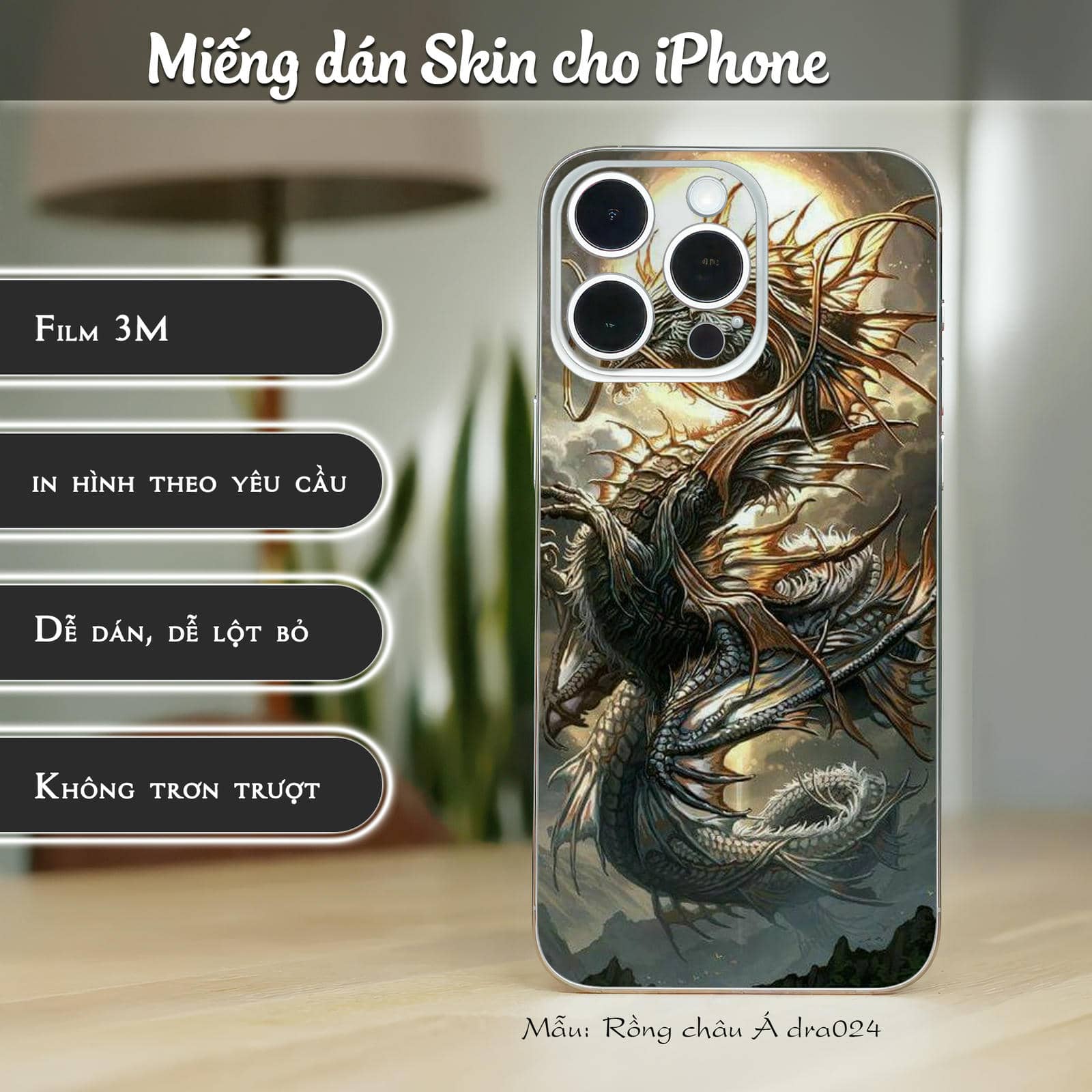 Skin dán điện thoại iPhone mẫu Rồng châu Á dra024